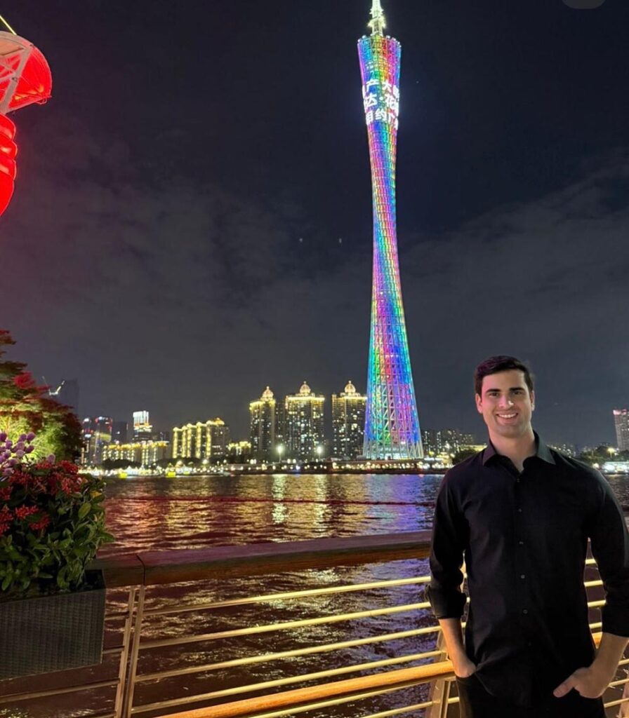 Eduardo Koerich, diretor comercial do Koerich, relatou sua recente viagem à China, ilustrada com fotos e observações sobre o uso de inteligência artificial, planejamento estratégico e cultura de dados. Ele também destacou sua visita à Canton Fair, em Guangzhou, uma das maiores feiras de negócios do mundo, que reflete a força da economia chinesa, caracterizada por crescimento acelerado e expansão industrial, especialmente no interior do país.