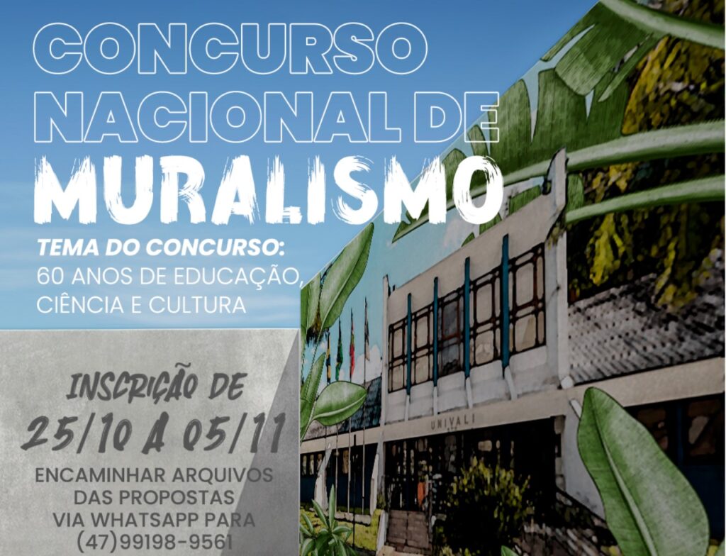 Os 60 anos de educação superior, ciência e cultura em Itajaí ficarão marcados nos muros da Universidade do Vale do Itajaí (Univali) por meio de pinturas comemorativas. Ao todo, três artistas selecionados no Concurso Nacional de Muralismo executarão suas artes no dia 18 de novembro. O objetivo é valorizar essa arte e integrar os artistas à universidade.