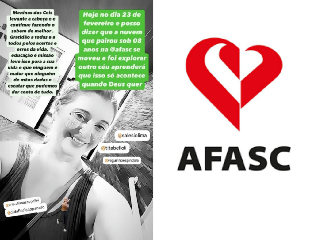 A coordenadora do Departamento de Educação Infantil (DEI) e da Associação Feminina de Assistência Social de Criciúma (Afasc), Andreza Dagostim, foi desligada do cargo. Por meio de um story em uma rede social, ela comunicou: “Hoje, no dia 23 de fevereiro, posso dizer que a nuvem que pairou sob oito anos na @afasc se moveu e foi explorar outro céu”.