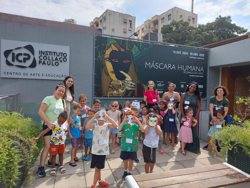O destaque da visita foi a exposição “Máscara Humana”, de Rodrigo De Haro, que reúne obras dos anos 1960 a 1980, período de maior produção do artista. Durante o passeio, as crianças puderam observar as obras sob diferentes perspectivas, explorando as cores e formas, além de conhecer a história por trás das peças e do próprio pintor. A experiência foi enriquecedora, proporcionando aprendizado e contato com a arte.