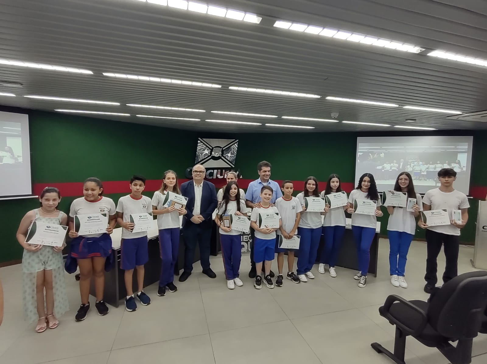 Cinco crianças do quinto ano do ensino fundamental e oito estudantes do nono ano da rede municipal de ensino de Criciúma, nesta terça-feira, dia 17, foram premiados, ou seja, tiveram o destaque do reconhecimento pelas excelentes notas alcançadas ao longo do ano letivo. Médias que beiram o 10,0 em praticamente todas as disciplinas garantiram premiações aos estudantes.