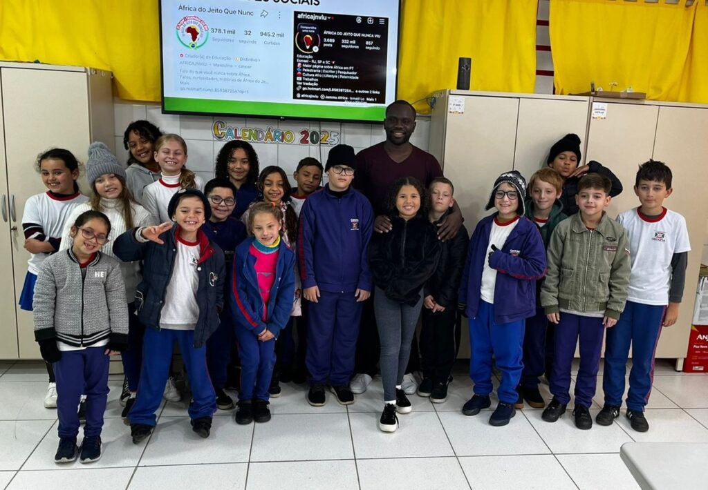 O influenciador e palestrante angolano, Esmael Nzuzi dos Santos Gabriel, de 32 anos, morador Criciúma há uma década, se destaca como uma das principais referências sobre a cultura africana no Brasil. Atualmente ele expande a sua atuação pela região Sul catarinense, após ter circulado por instituições de ensino e corporações com seu projeto África Nas Escolas.
