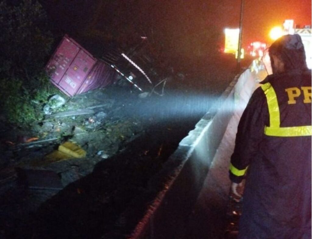 A Polícia Rodoviária Federal informou que o acidente foi km 665, no sentido Sul. Segundo a PRF, um caminhão carregado com um contêiner perdeu os freios e atingiu a traseira da van, que foi projetada à frente e atingiu um carro. A van rodou na pista e o caminhão a arrastou para fora, tombando sobre ela.