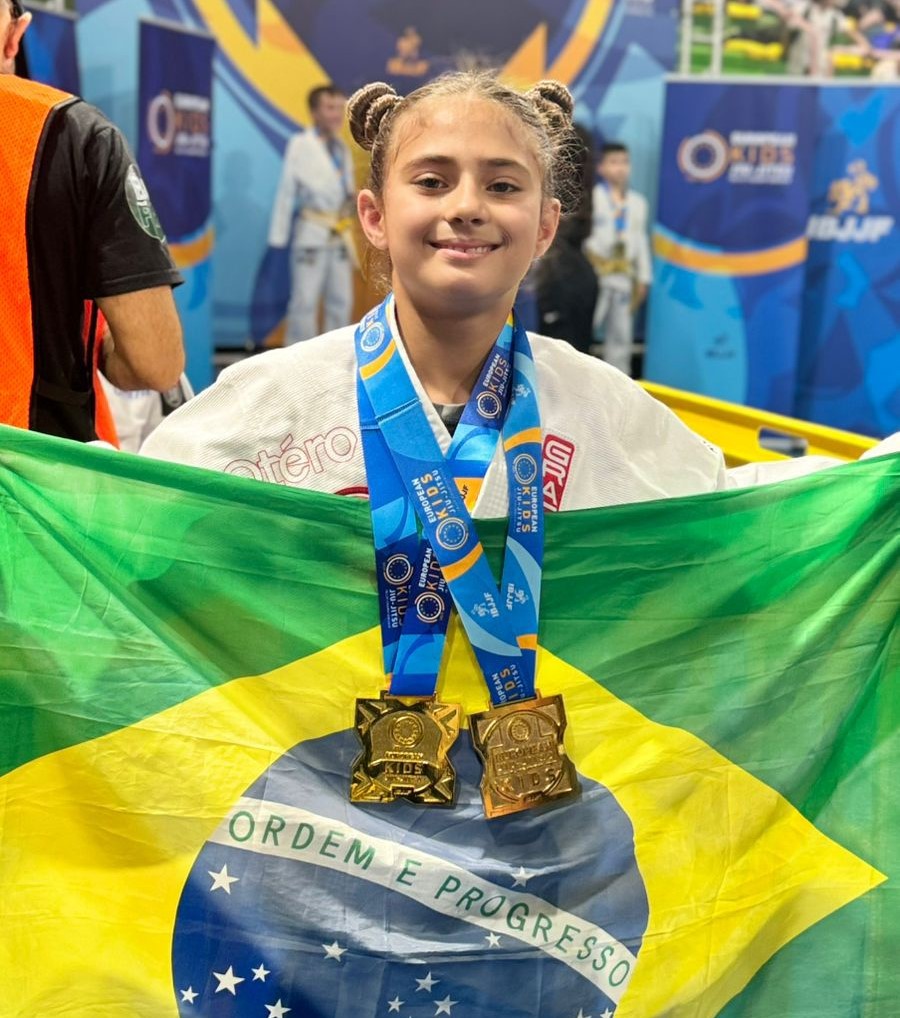 A jovem atleta catarinense Jade Mendonça conquistou no último sábado (17) seu segundo título europeu de jiu-jítsu na categoria kids. A competição aconteceu em Roma, na Itália, e consagrou novamente a “Princesa Jade”, como é conhecida no meio das artes marciais. Aos nove anos, ela repetiu o feito de 2023 e reforçou sua posição como uma das grandes promessas do jiu-jítsu brasileiro.