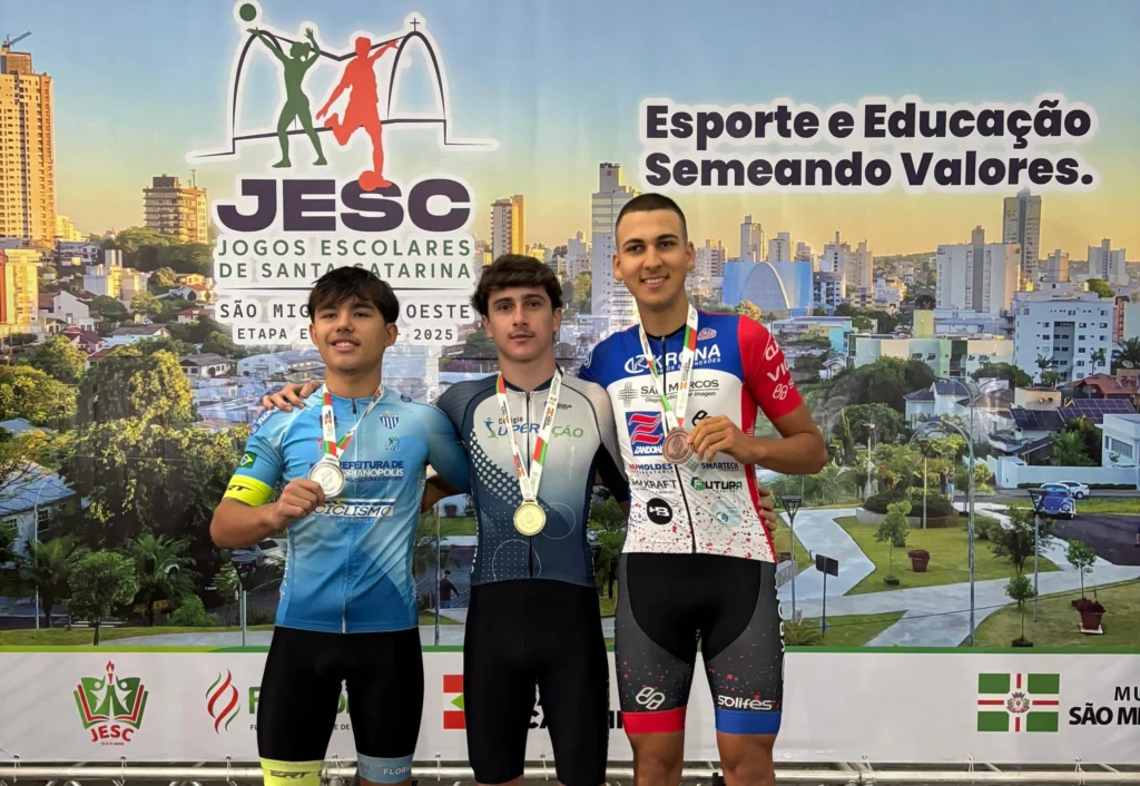 O ciclista João Pedro Piazza, da equipe AVAÍ / FME Florianópolis / APGF e estudante do colégio Bom Jesus, em Palhoça, conquistou o segundo lugar nos Jogos Escolares de Santa Catarina (JESC), realizados entre os dias 19 e 22 de junho em São Miguel do Oeste. A competição, voltada para atletas de 15 a 17 anos, reúne estudantes que representam suas respectivas instituições de ensino. O campeão da disputa foi Vicenzo Locatelli, do colégio Superação, de Videira, enquanto João Maurina, do colégio Uno-Chapecó, ficou com a terceira colocação.