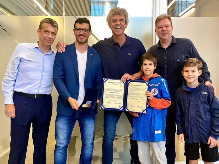 Na última quinta-feira (19), o Avaí Futebol Clube entregou a medalha Saul Oliveira, a mais alta honraria do clube, ao tenista Gustavo Kuerten. Guga, que foi homenageado em 2023, durante o ano do Centenário do clube, recebeu a medalha nesta data devido a conflitos de agenda. O evento contou com a presença da Diretoria Executiva do Avaí e das mesas diretoras dos conselhos Fiscal e Deliberativo.