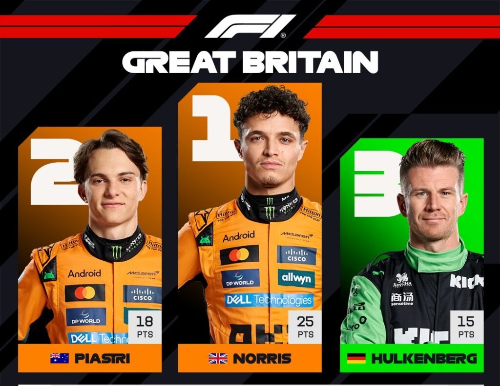 Lando Norris conquistou sua primeira vitória consecutiva na Fórmula 1 no chuvoso e caótico Grande Prêmio da Inglaterra disputado neste domingo (6).