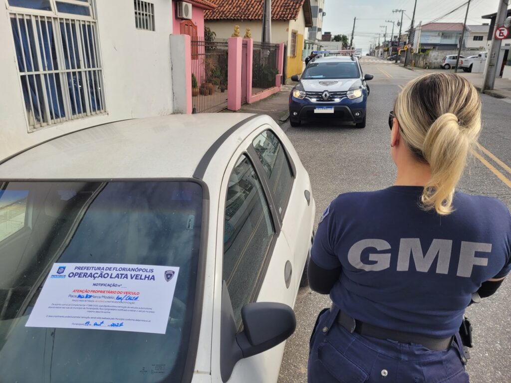 Veículos em situação de abandono, foram adesivados com a notificação aos proprietários nessa segunda-feira, 14, durante ação da Guarda Municipal de Florianópolis.