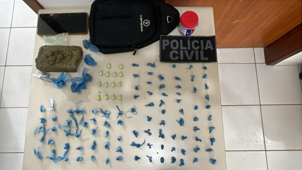 O jovem foi abordado em via pública e, durante a ação, os agentes encontraram com ele 92 porções de cocaína prontas para comercialização, além de 300 gramas de maconha e 14 comprimidos de ecstasy.