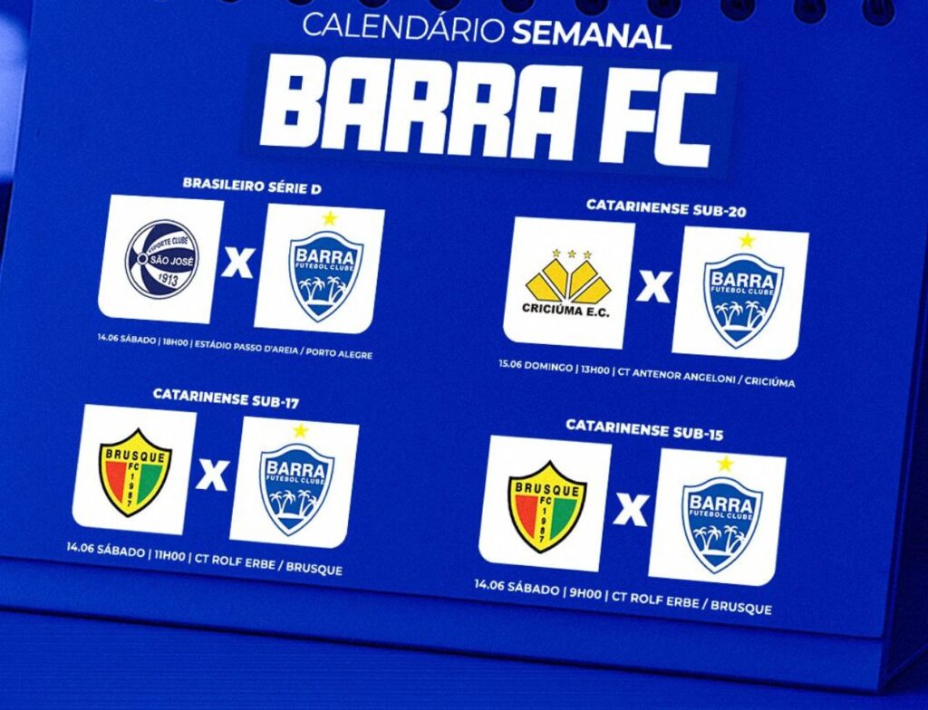 O fim de semana será movimentado para o Barra Futebol Clube, que terá quatro compromissos importantes entre sábado e domingo, com partidas envolvendo as categorias Sub-15, Sub-17, Sub-20 e o time profissional.