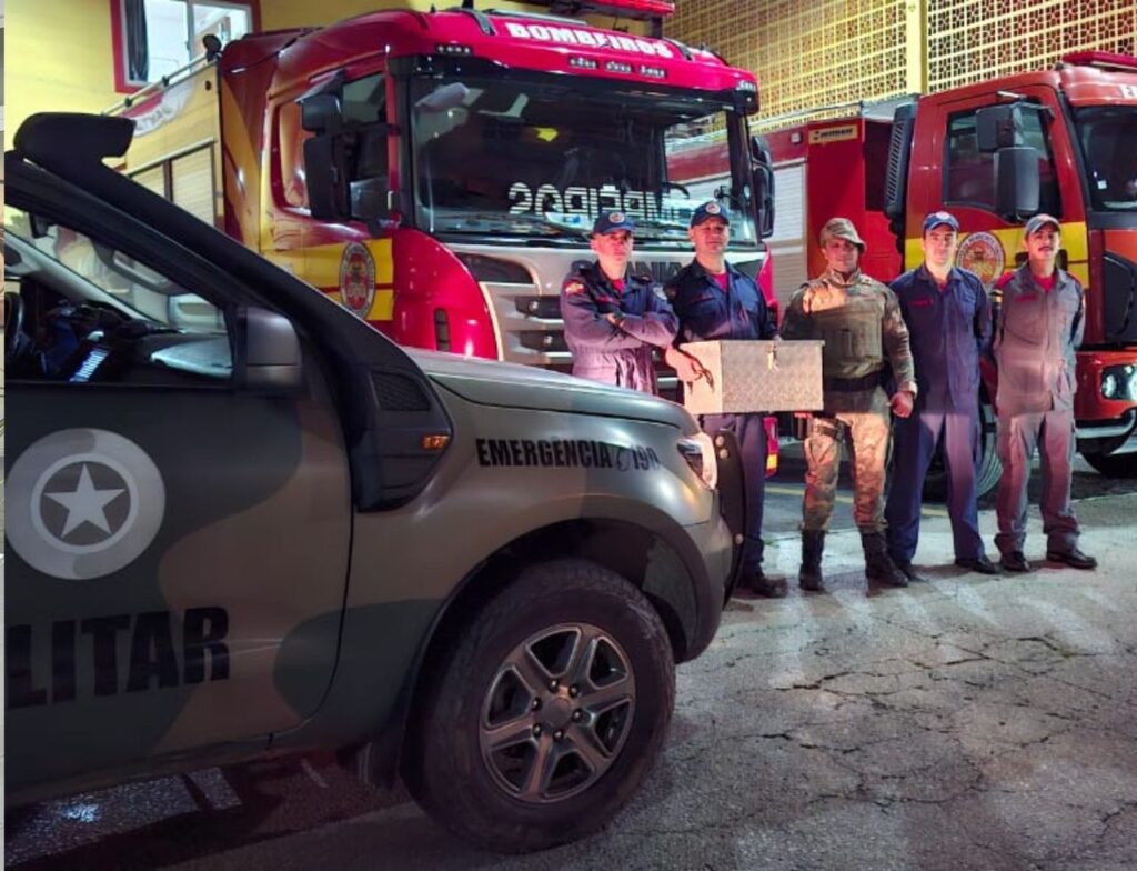 Chegando ao local indicado, a guarnição confirmou que o animal estava dentro de um cano de água que passava por baixo do passeio público, com saída para a rua. Na sequência os bombeiros realizaram a captura do réptil, que foi colocado em uma caixa adequada para o transporte.