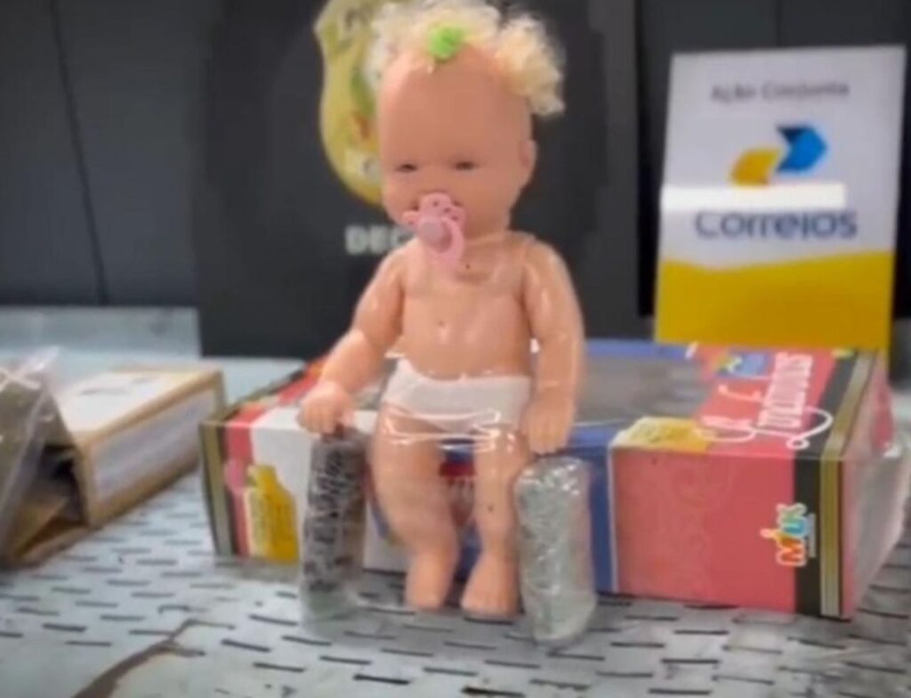 A investigação começou após a identificação de uma boneca do tipo “bebê reborn” enviada por correspondência, cujo interior estava recheado com haxixe. A descoberta ocorreu durante uma fiscalização no Centro de Triagem e Distribuição dos Correios, com o auxílio de cães farejadores da Polícia Civil.