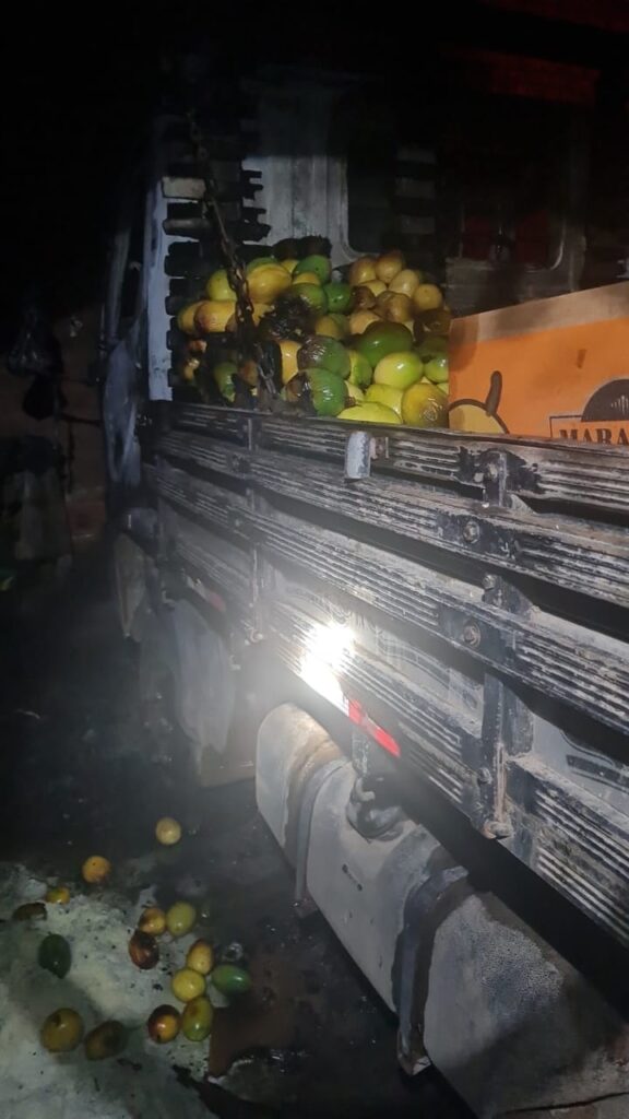 Quando os bombeiros chegaram ao local, proprietários e alguns populares tentavam conter o fogo com galões de água. O incêndio, que já estava em crescimento, atingiu a cabine do caminhão, parte da carroceria e danificou partes do telhado do galpão.