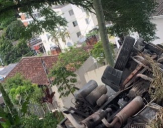 Caminhão perde freio e tomba no bairro Carvoeira