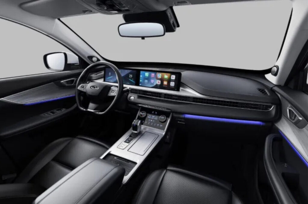 Interior do novo Tiggo 7 Pro Plug-in Hybrid. – Foto: DivulgaçãoO topo de linha, Tiggo 7 Pro Plug-in Hybrid, combina motor 1.5 turbo a dois motores elétricos, entregando 317 cv e 56,6 kgfm de torque.