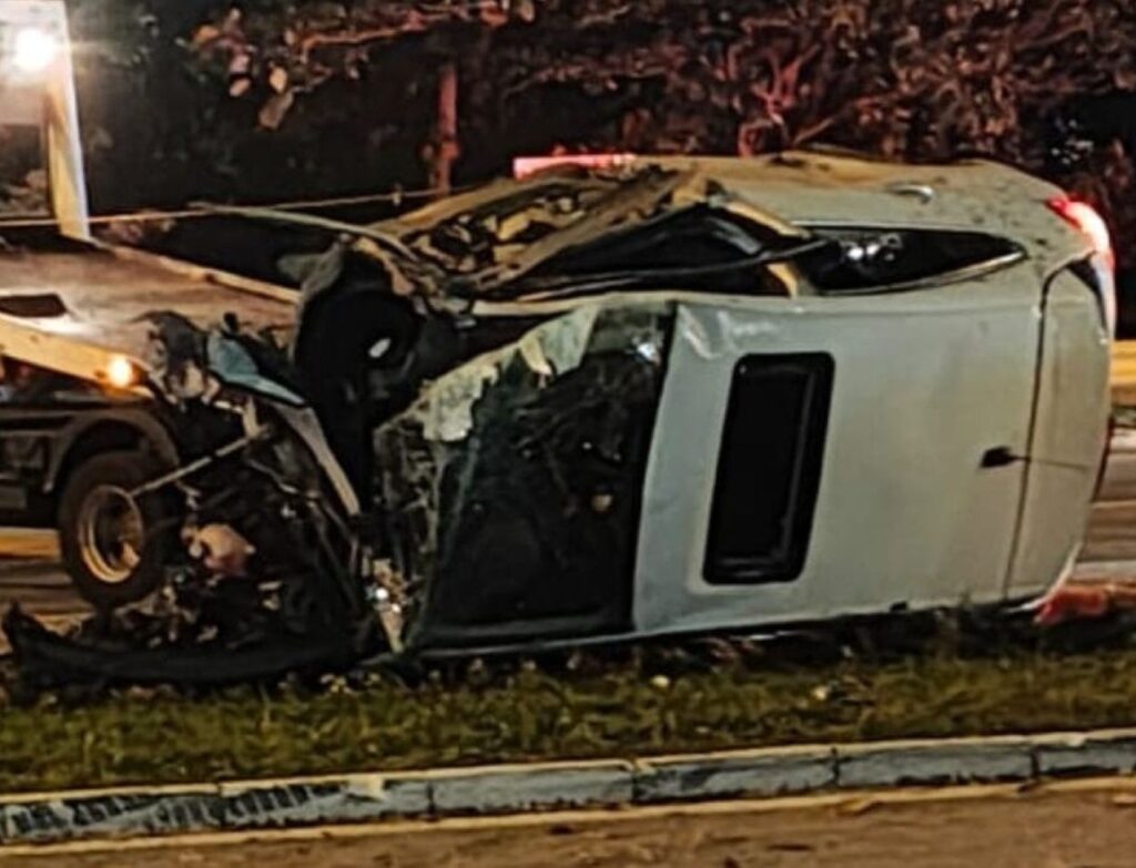 Um acidente impressionante foi registrado no início da manhã desta sexta-feira (27) na Avenida Beira-mar Norte, em Florianópolis. Por volta das 5h, um carro perdeu o controle, capotou, arrancou um poste e ainda colidiu contra uma árvore. O impacto foi tão violento que o veículo se partiu ao meio.