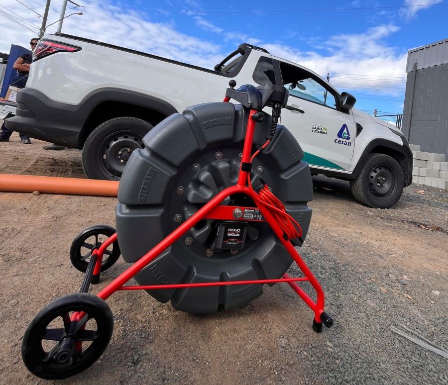 O equipamento é uma câmera de alta definição acoplada a uma sonda, capaz de percorrer até 100 metros dentro das redes de esgoto, identificando falhas ou danos. Cada unidade custou R\$ 130 mil. A primeira capacitação dos profissionais ocorreu este mês em Criciúma, onde o uso da nova tecnologia permitiu detectar uma deformação na tubulação que será corrigida de forma preventiva.