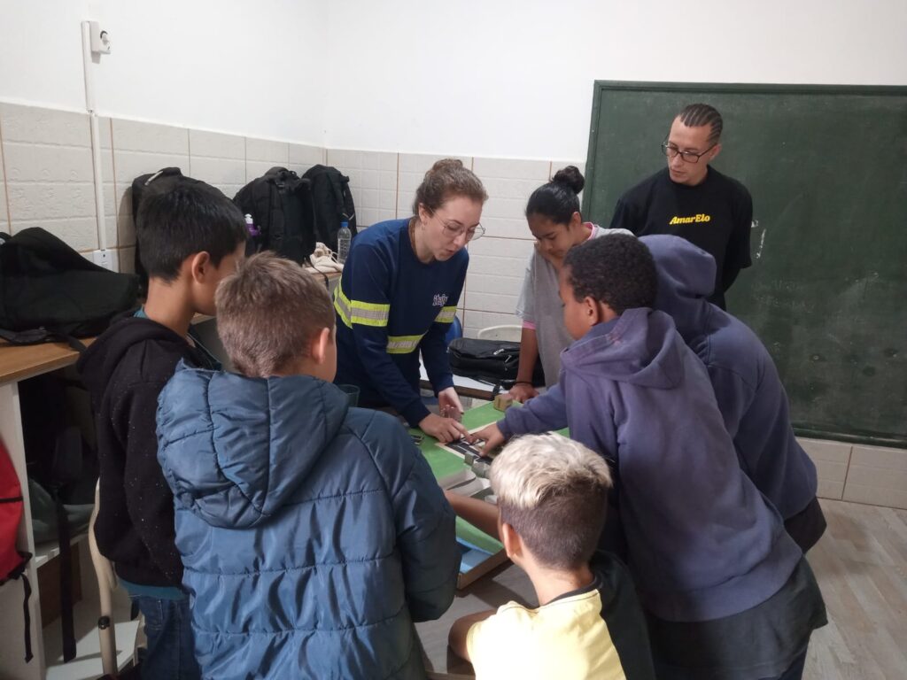 A oficina destacou a importância das obras de saneamento na região. Com o auxílio de uma maquete, os educadores explicaram as diferenças entre as redes subterrâneas de drenagem pluvial e esgotamento sanitário, reforçando a relevância de uma infraestrutura adequada para a saúde e o meio ambiente.