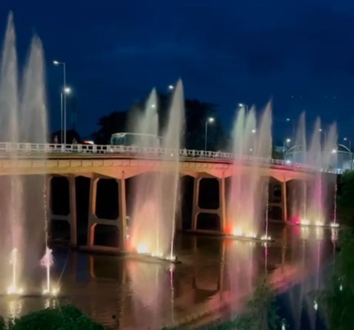 Já as águas dançantes ocorrerão no Rio Tubarão, ao lado da ponte Nereu Ramos. O sistema do espetáculo já foi testado e encantou quem passou pelo local ou assistiu os vídeos postados na internet. O show ocorrerá todas as noites até o Natal.