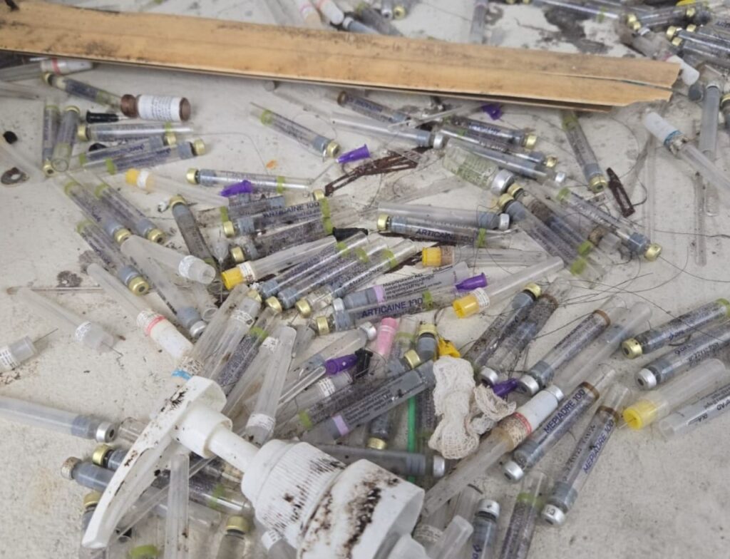 Dezenas de ampolas de medicamentos e seringas no chão, além de outros tipos de resíduos acumulados. Esse foi o cenário encontrado pelos agentes da Vigilância Sanitária de Itajaí após inspeção em uma clínica odontológica abandonada, no centro da cidade.