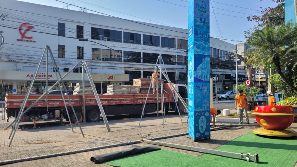 Na tarde dessa quarta-feira, 04, iniciou a montagem do palco, que ficará no pátio da Casa da Cidade, na região central do município.
