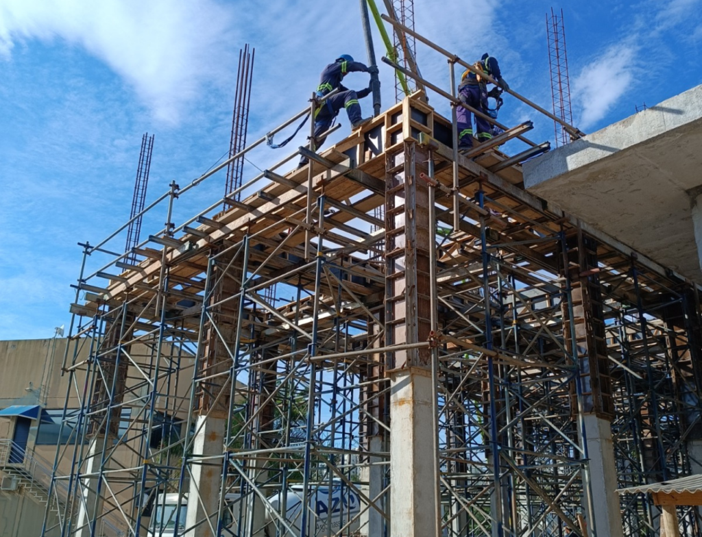 A última sexta-feira (6), marcou mais uma etapa significativa na construção das estruturas da Estação de Tratamento de Esgoto Insular, a principal ETE de Florianópolis, executada pela CASAN (Companhia Catarinense de Águas e Saneamento). Foi realizada a concretagem final deste ano, utilizando um volume de 15m³ de concreto, equivalente a dois caminhões betoneira. A concretagem concluiu a construção dos pilares e vigas da casa de sopradores e biofiltro, estrutura que receberá equipamentos responsáveis por injetar ar dissolvido no efluente, acelerando o processo de decomposição da matéria orgânica. Além disso, esta estrutura abrigará uma nova unidade de tratamento de odores com biofiltros e controle de umidade no piso superior.