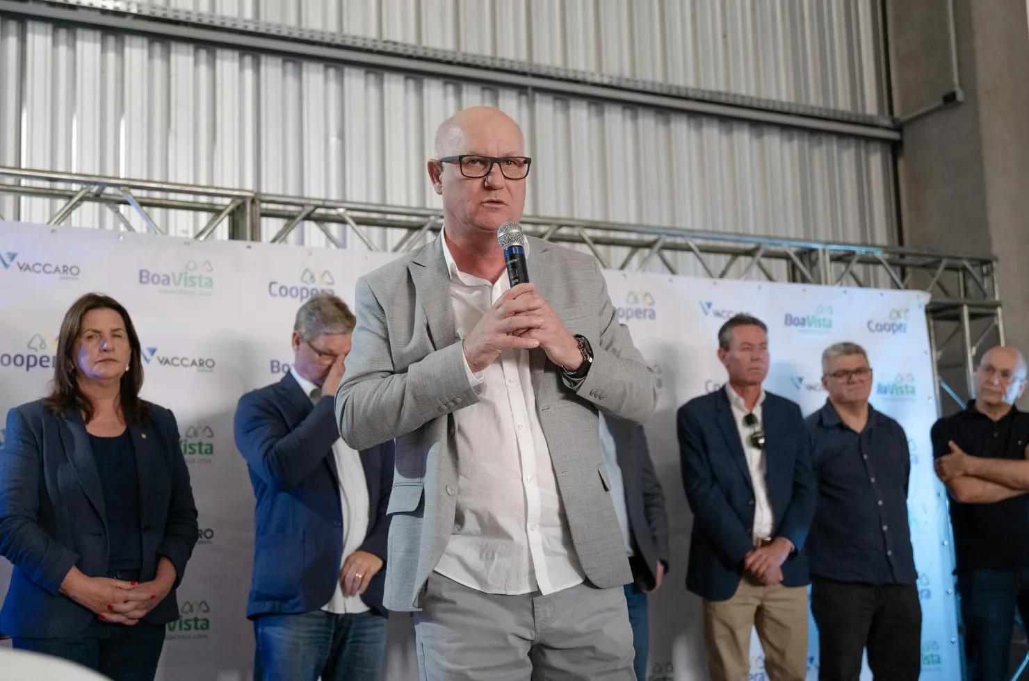 O presidente da Coopera, Rogério Braz Feller, fez um discurso emocionado sobre a importância do projeto e o impacto para a cooperativa. “Estamos fazendo história hoje, e não é qualquer história. Poderíamos ter R$ 75 milhões guardados no banco, mas o dinheiro não deve ficar parado. Ele deve ser investido, gerar renda e criar empregos. Uma cooperativa só é forte pelos investimentos que realiza. Uma cooperativa que não investe, que não planeja, infelizmente não prospera”.