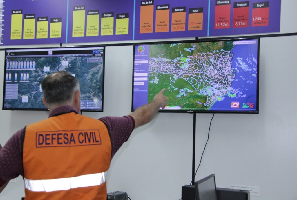 Devido à previsão de chuva intensa nos próximos dias, a Defesa Civil de Itajaí monitora as condições climáticas da cidade. Há possibilidade de alagamentos em áreas ribeirinhas e deslizamentos nas áreas de encosta do Município. Na região de Itajaí, são esperados volumes entre 150 e 200 milímetros a partir de quarta-feira, 09, até a sexta-feira 11.