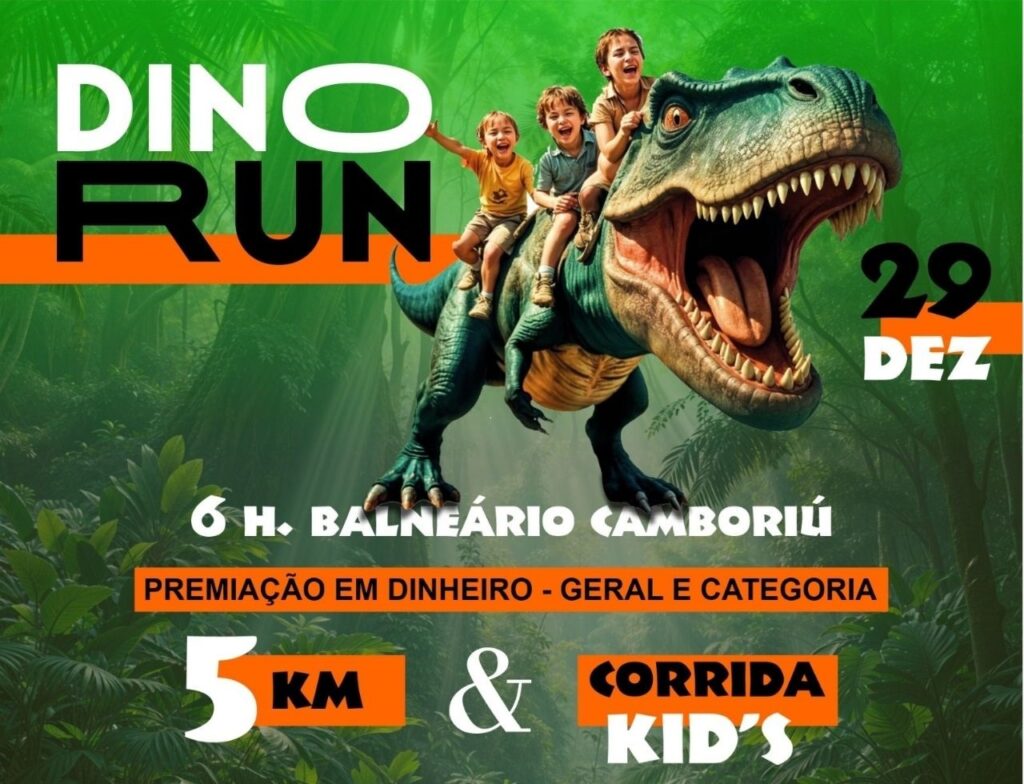 Em uma parceria inédita, o Parque Aventura Jurássica e a Squadra Di Alex Eventos Esportivos criaram a DinoRun, uma corrida de rua em Balneário Camboriú para reunir a família, amigos e encerrar o ano em grande estilo. O parque, que tem as maiores réplicas de dinossauros do Brasil, será o ponto de partida e chegada dessa aventura que também terá a participação de crianças e idosos.