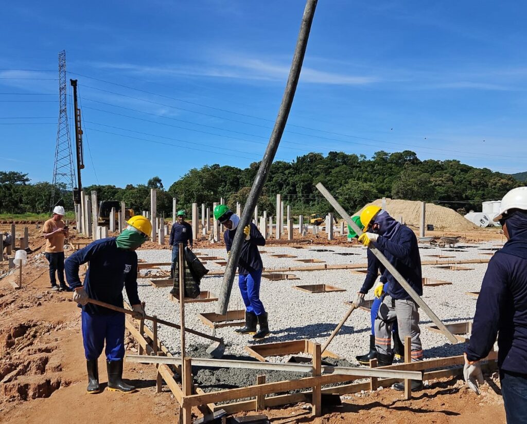 A construção da nova Estação de Tratamento de Água (ETA) de Biguaçu entrou em uma etapa importante na última semana, com o início das atividades de terraplenagem e fundação das estruturas. Serão empregados cerca de 1.600 metros cúbicos de concreto para erguer as bases que sustentarão os tanques da estação, além da instalação de 471 estacas para garantir a firmeza das fundações. O investimento da Companhia Catarinense de Águas e Saneamento (Casan) na obra, localizada no Bairro Alto Biguaçu, é de R$ 86,3 milhões.