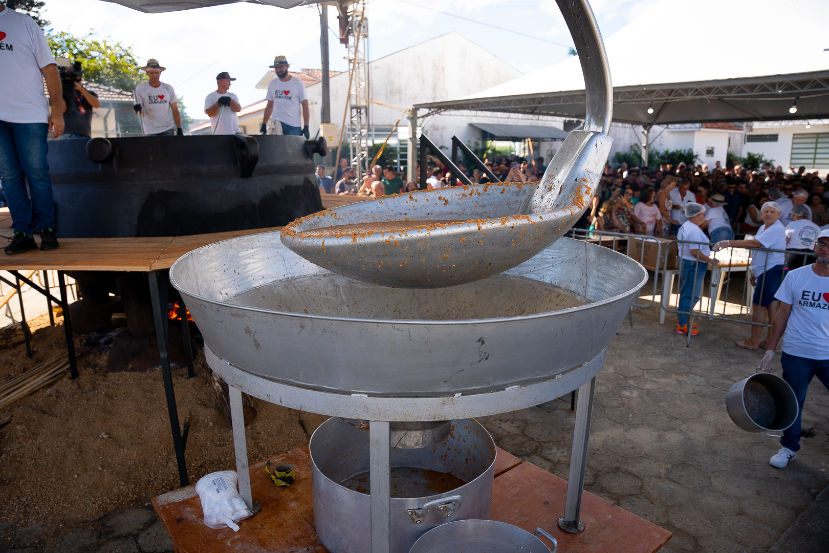 Conforme o vice-prefeito de Armazém, Guilherme Penacho, a maior panela do mundo estará no município para produzir o caldo. A panela, já usada nas outras edições, tem 13 toneladas. Para manipular o alimento, será necessário uma colher de 750 kg, adaptada a uma escavadeira hidráulica.