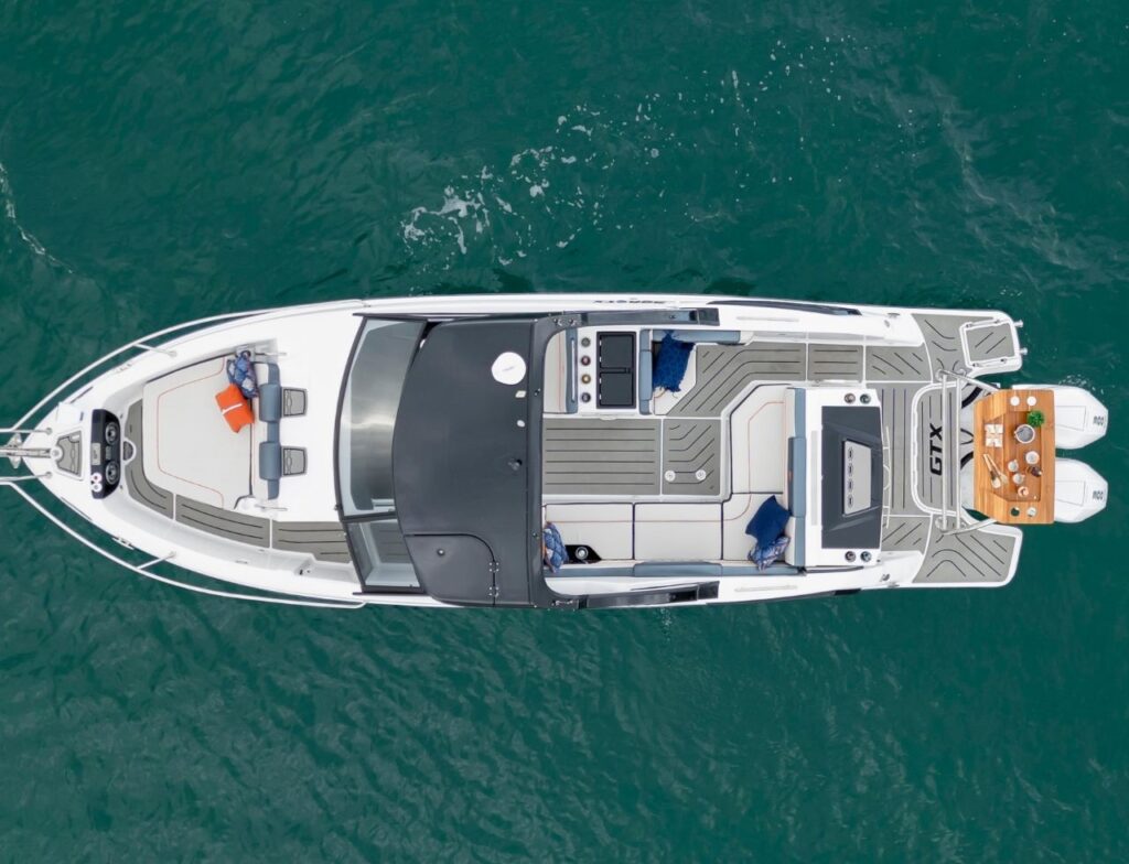 Entre os ambientes que chamam a atenção, está a ampla área gourmet na popa; o solário rebaixado e passagem lateral para a proa com mais segurança, bem como, um interior otimizado com espaços de armazenamento. A embarcação de 30 pés tem capacidade para 12 pessoas e oferece acomodação para pernoite de até quatro pessoas. A lancha tem preço inicial de US$ 289,9 mil.