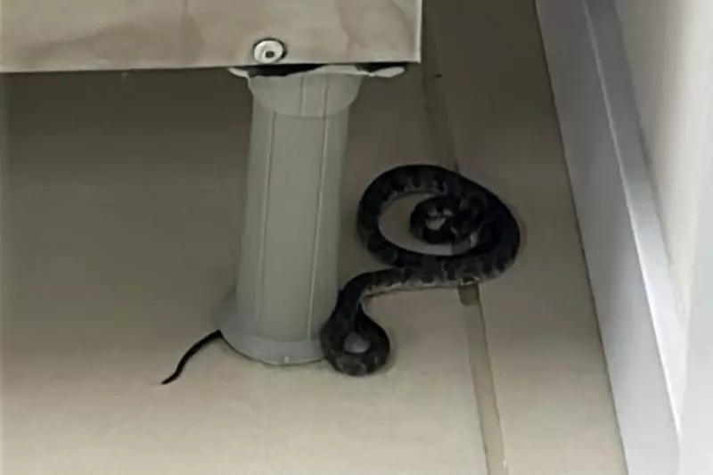 Um filhote de jararaca foi encontrado na manhã desta quarta-feira (5) sob um bebedouro de uma escola em Florianópolis. O Corpo de Bombeiros Militar de Santa Catarina (CBMSC) foi acionado para capturar o animal, que foi removido e levado para uma área de mata distante de qualquer construção.