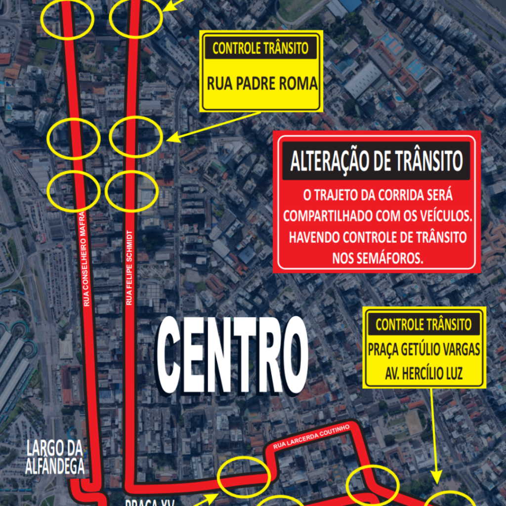 No dia 23, das 5h às 9h, ocorrerá a corrida rústica Chão da Cidade, com largada e chegada no Largo da Alfândega. O percurso passará pelas ruas Conselheiro Mafra, Parque da Luz, Felipe Schmidt, Lacerda Coutinho e Rua dos Ilhéus. O tráfego será compartilhado com veículos, com monitoramento nos semáforos da Avenida Rio Branco, Rua Padre Roma, Praça Getúlio Vargas, Avenida Hercílio Luz e Rua Marechal Guilherme.