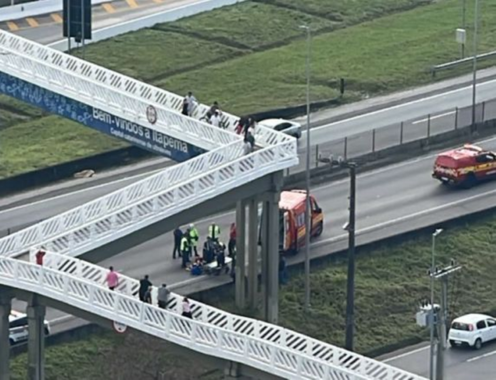 Um homem caiu da passarela sobre a BR-101, em Itapema, na tarde deste domingo (30), e causou a interdição de uma faixa da rodovia. A ocorrência foi registrada no quilômetro 151, sentido Curitiba. A faixa da direita precisou ser bloqueada para o atendimento, provocando mais de dois quilômetros de filas, segundo a Arteris Litoral Sul.