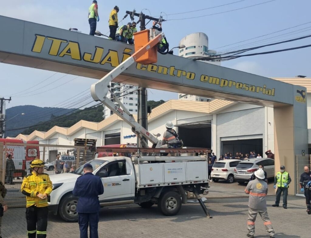 O centro empresarial fica na rua José Gall, em frente ao Itamirim Clube de Campo, no bairro Ressacada. Os bombeiros e o Samu foram acionados para atender a vítima, enquanto a equipe da Celesc desligou a rede de energia elétrica.