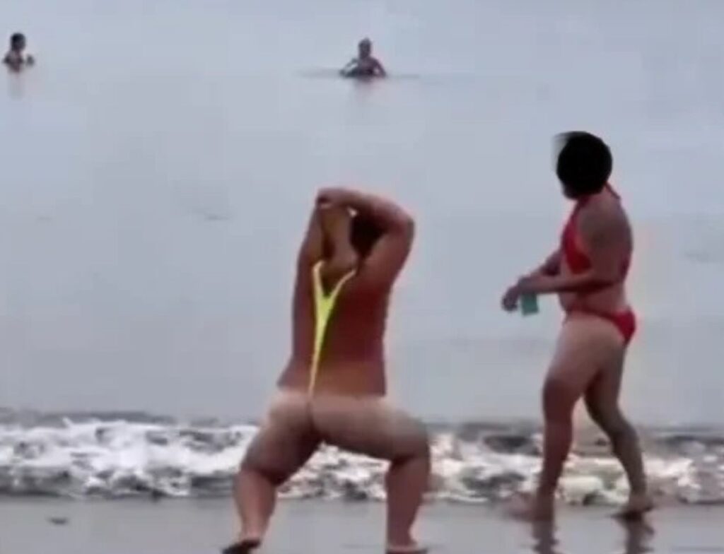 Dois homens de fio dental curtiram descontraidamente a praia na tarde de domingo, em Balneário Piçarras, no Litoral Norte. Isso mesmo, no melhor estilo “garota verão 2025”, a dupla ostentou as peças do vestuário feminino que deixam os homens loucos.