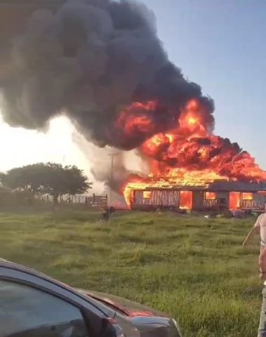 Um incêndio de grandes proporções destruiu um galpão de criação de gado no bairro Madre, em Laguna, no fim da tarde deste sábado (8). O Corpo de Bombeiros Militar foi acionado por volta das 18h26 e, ao chegar ao local, encontrou as chamas em fase de diminuição. A rápida atuação da equipe impediu que o fogo se espalhasse para uma edificação vizinha e para a área de confinamento dos animais.