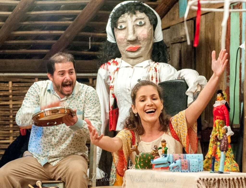 A peça é uma homenagem ao cantador de boi de mamão Arnoldo Cueca, figura emblemática da cultura popular catarinense. Em cena, a neta do homenageado, a artista Natália Pereira, revive histórias do avô e entoa as canções que marcaram sua trajetória, acompanhada do músico e ator Vinícius José, da Dionísios Teatro, de Joinville. A apresentação noturna foi pensada especialmente para acolher o público familiar.