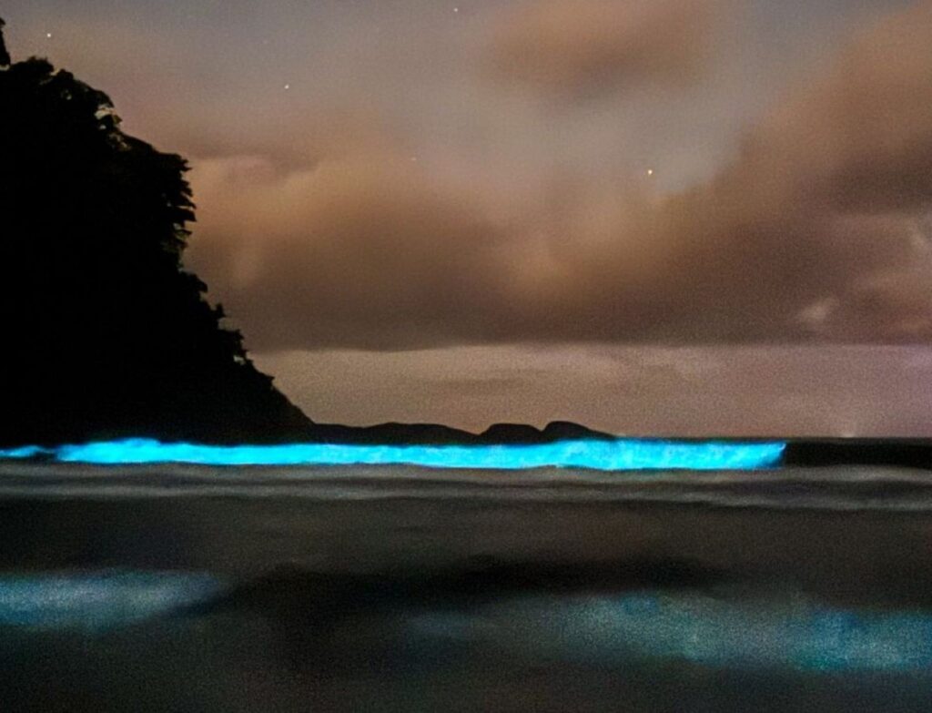 A bioluminescência ocorre quando microrganismos marinhos, como algas e plânctons, emitem luz ao serem agitados por movimentos na água — seja por ondas, barcos ou até banhistas. A luz é resultado de uma reação química entre a luciferina e a enzima luciferase, que produzem um brilho visível durante o processo de oxidação.