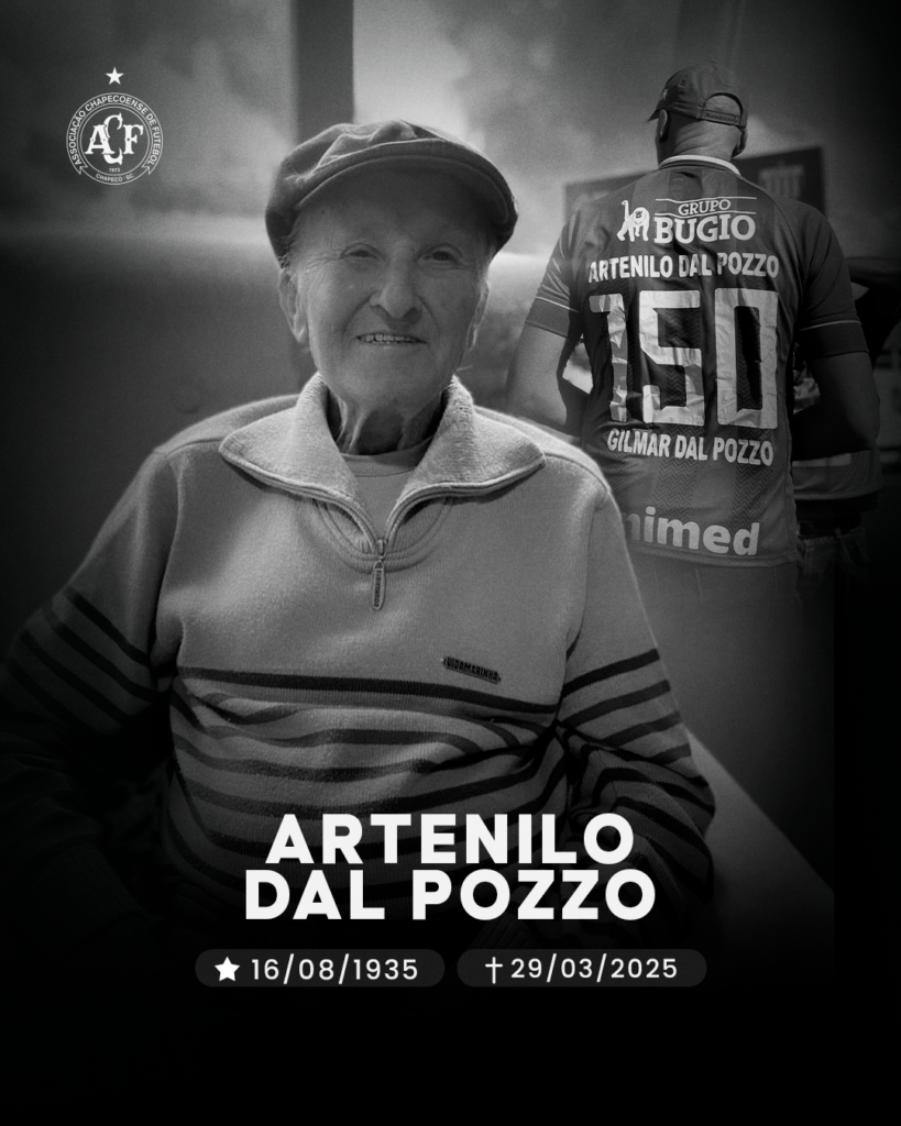 Na madrugada deste sábado (29), foi confirmado o falecimento de Artelino Dal Pozzo, aos 89 anos de idade. Ele é pai do técnico da Chapecoense, Gilmar Dal Pozzo.
