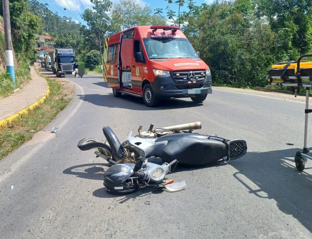 Ao chegarem ao local, a equipe dos bombeiros voluntários encontrou o motoqueiro, de 24 anos, deitado no chão, sendo assistido por um bombeiro voluntário que estava de folga. O paciente apresentava suspeita de politraumatismo e foi imobilizado e posteriormente conduzido pela ambulância do Serviço de Atendimento Médico de Urgência (Samu) ao hospital de Ibirama. O condutor do caminhão não sofreu ferimentos e assinou termo de recusa de condução hospitalar.