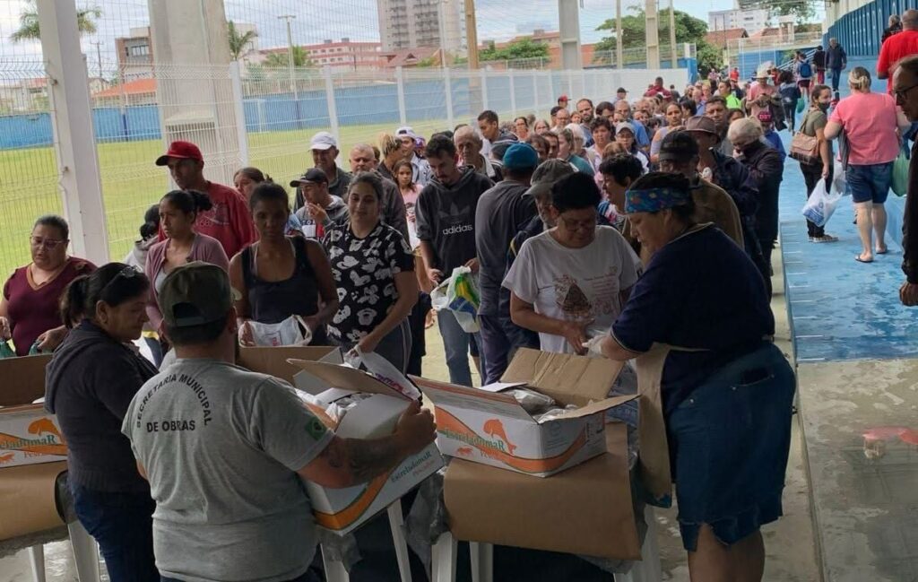 A distribuição gratuita de 5 toneladas de sardinha congelada em Barra Velha é uma iniciativa da empresa de pescados Estrela do Mar com apoio da Prefeitura Municipal.