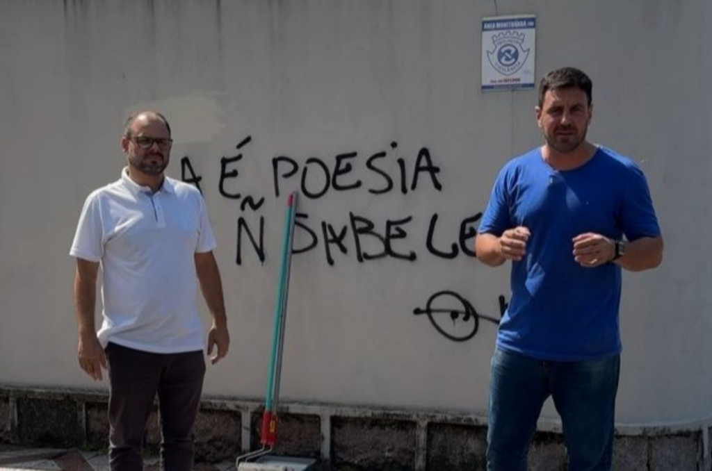 Outros locais públicos também foram pichados, como o muro da prefeitura, e que está em processo de pintura