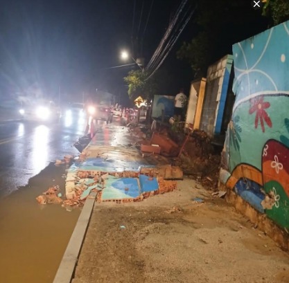 O Corpo de Bombeiros foi inicialmente acionado, mas a Defesa Civil assumiu a ocorrência, já que não havia pessoas feridas. O muro da escola, que fica na esquina da rodovia com a Servidão Ana Cardoso, desabou devido ao impacto das fortes chuvas que atingiram a cidade.