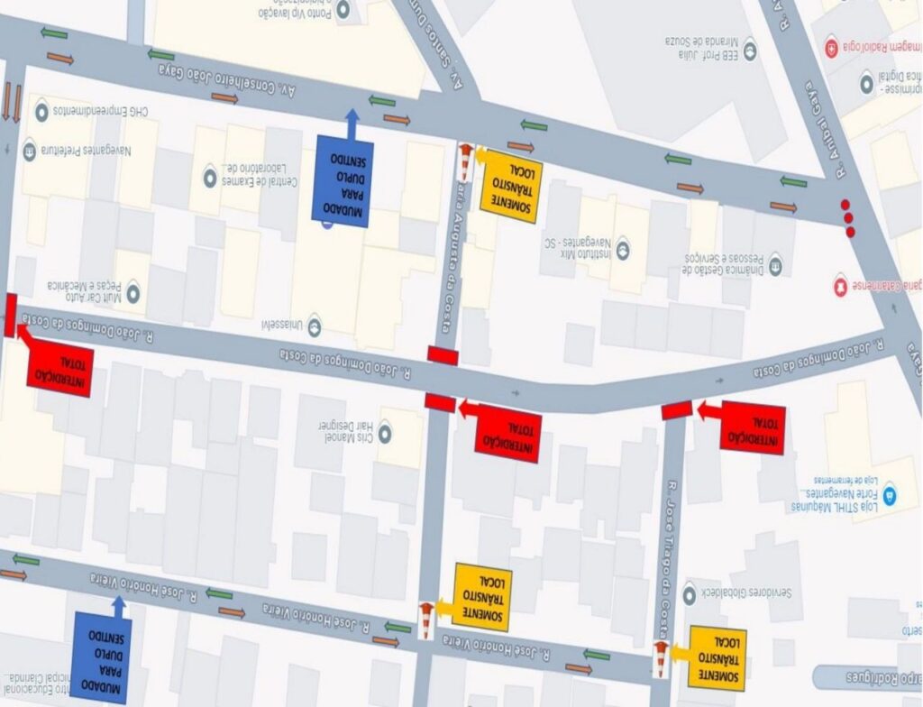 Obras realizadas na rua Raulino Couto, no bairro Nossa Senhora das Graças, causam a interdição de trechos da via desde a segunda-feira (23). Com isso, o trânsito na região foi adaptado pela Fundação Municipal de Vigilância e Trânsito de Navegantes (Navetran).