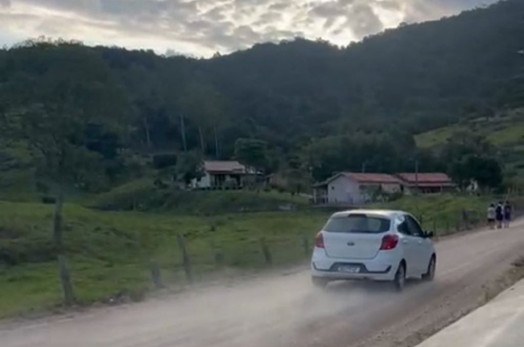 A estrada tem 2,5 quilômetros de extensão e é muito utilizada por caminhões que transportam materiais como aterro e areão para prefeituras da região.