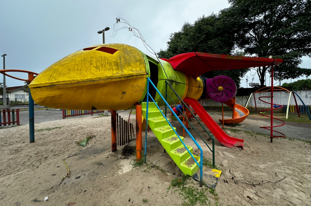 O playground da Praça Memorial Aeroporto Anita Garibaldi (Praça do Avião) foi interditado pela Defesa Civil na manhã desta sexta-feira (17), após a emissão de um laudo técnico que constatou graves danos estruturais nos brinquedos ali instalados. Segundo o perito Felipe Flor, apenas as partes metálicas dos equipamentos possuem possibilidade de recuperação, enquanto as peças de plástico estão totalmente danificadas e foram consideradas inutilizáveis.