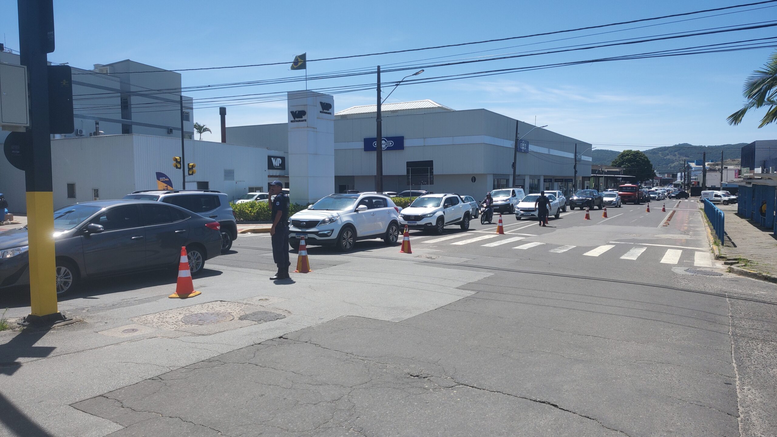 A interferência no entanto, causou um grande congestionamento na R. Padre Geraldo Spettmann. Durante o engarrafamento, uma ambulância do Corpo de Bombeiros também teve a passagem dificultada, demorando um total de dois minutos para efetuar o trajeto até a Rua Coronel Collaço.