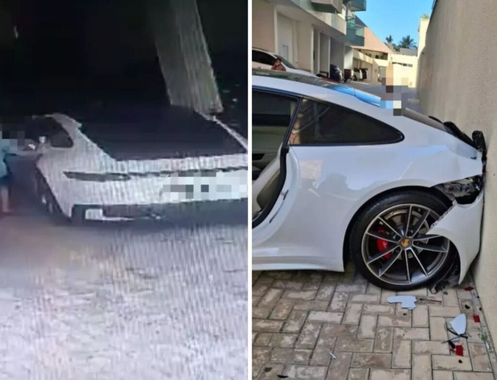 Um menino achou um carro um pouco maior dos que compõem sua coleção e resolveu testar o brinquedinho na tarde de segunda-feira (3), na Meia Praia, em Itapema. O garotinho simplesmente entrou no Porsche, deu marcha ré e acabou colidindo contra o muro do condomínio onde estava o veículo.